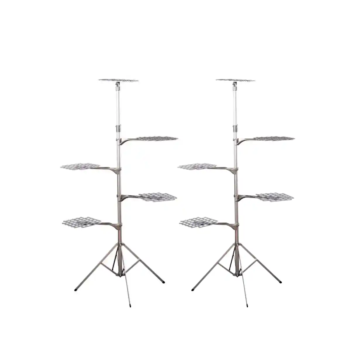 Portable, elegant, and easy to set up, this product includes two identical stands designed for flexible merchandising and compact storage. When used with the Pole Rack Platform Shelf Attachment (#1318), each stand can display 3–4 baskets or other items while maintaining excellent stability within just two square feet of floor space.