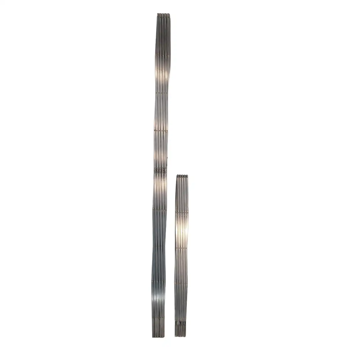 Made from sturdy anodized aluminum, this rack offers excellent durability without added weight. The accordion-style frame folds easily for transport, and retractable hooks provide reliable support while maintaining a clean appearance when stored.